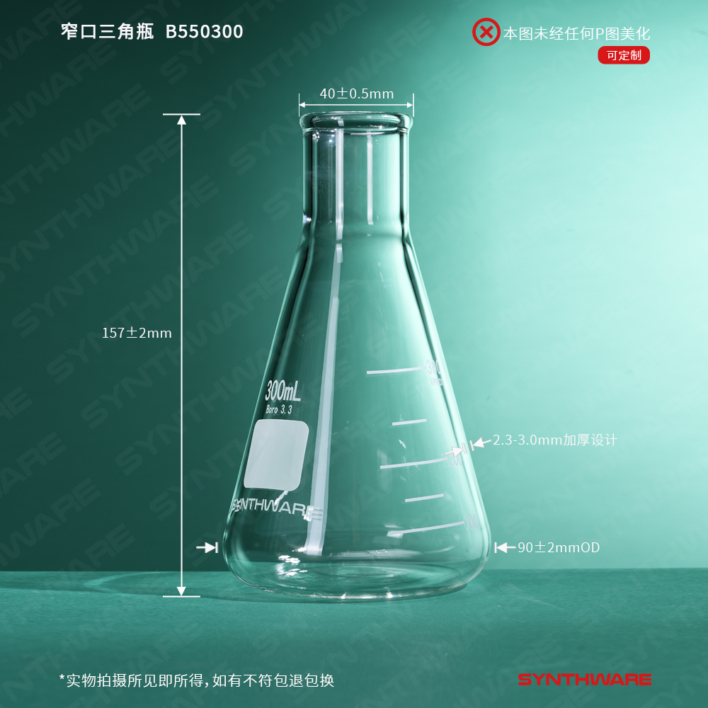 窄口三角瓶,厚壁带刻度,容量300ml,口内径:30mm B550300