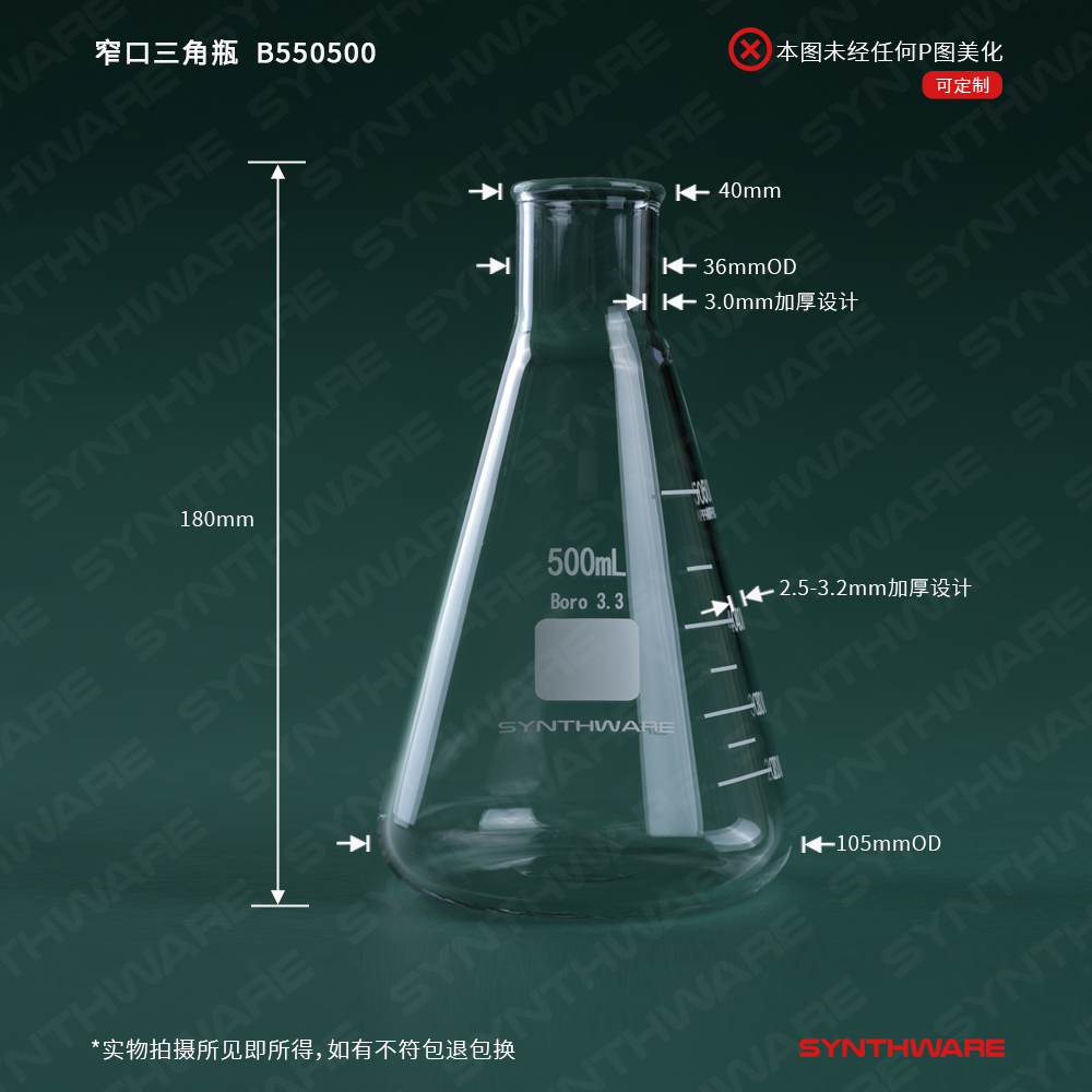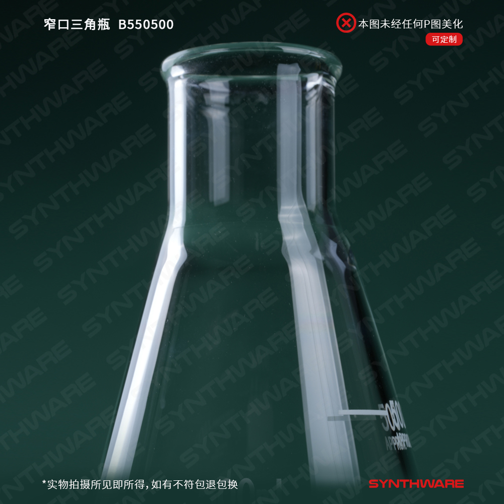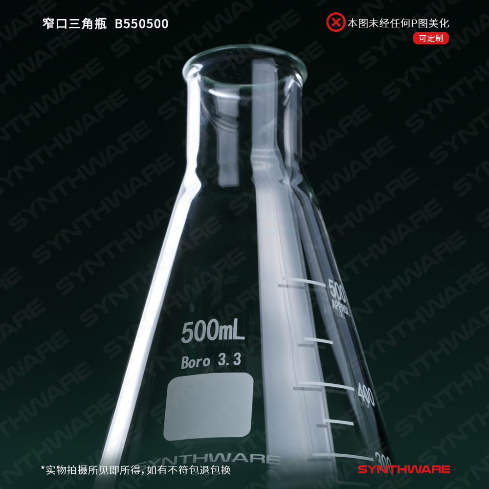 窄口三角瓶,厚壁带刻度,容量500ml,口内径:30mm B550500