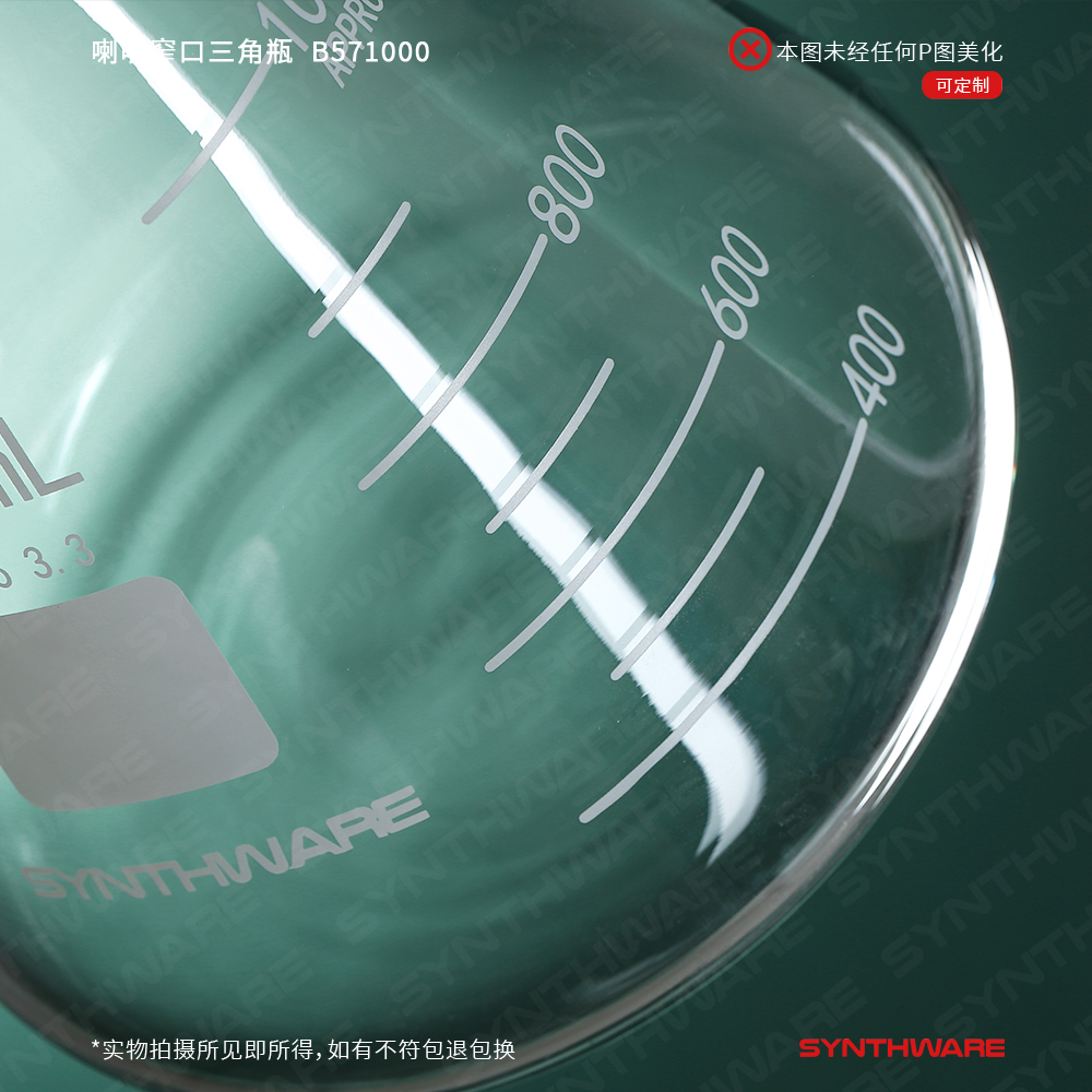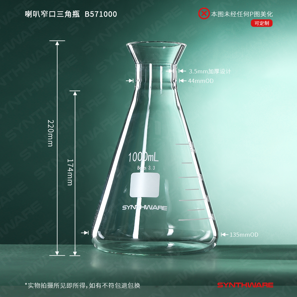 喇叭窄口三角瓶,厚壁带刻度,容量1000ml,口内径:37mm B551000 B571000