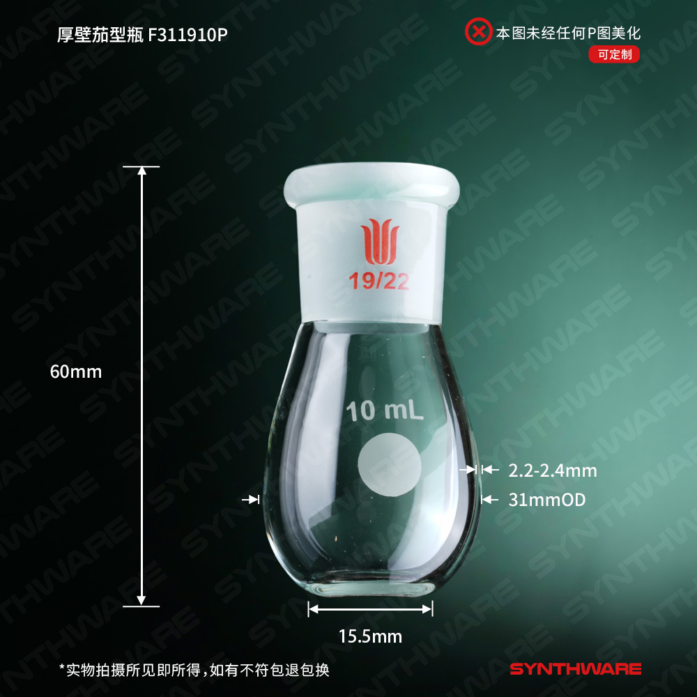 厚壁茄型瓶,平底,高强度,磨口:14/20,10ml F311410P