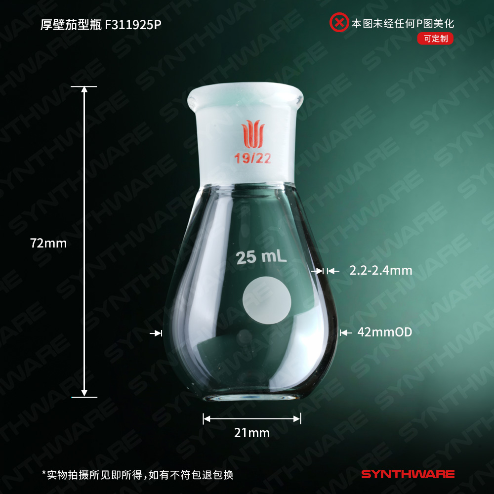 厚壁茄型瓶,平底,高强度,磨口:24/40,25ml F312425P