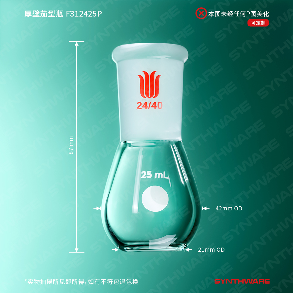 厚壁茄型瓶,平底,高强度,磨口:14/20,25ml F311425P