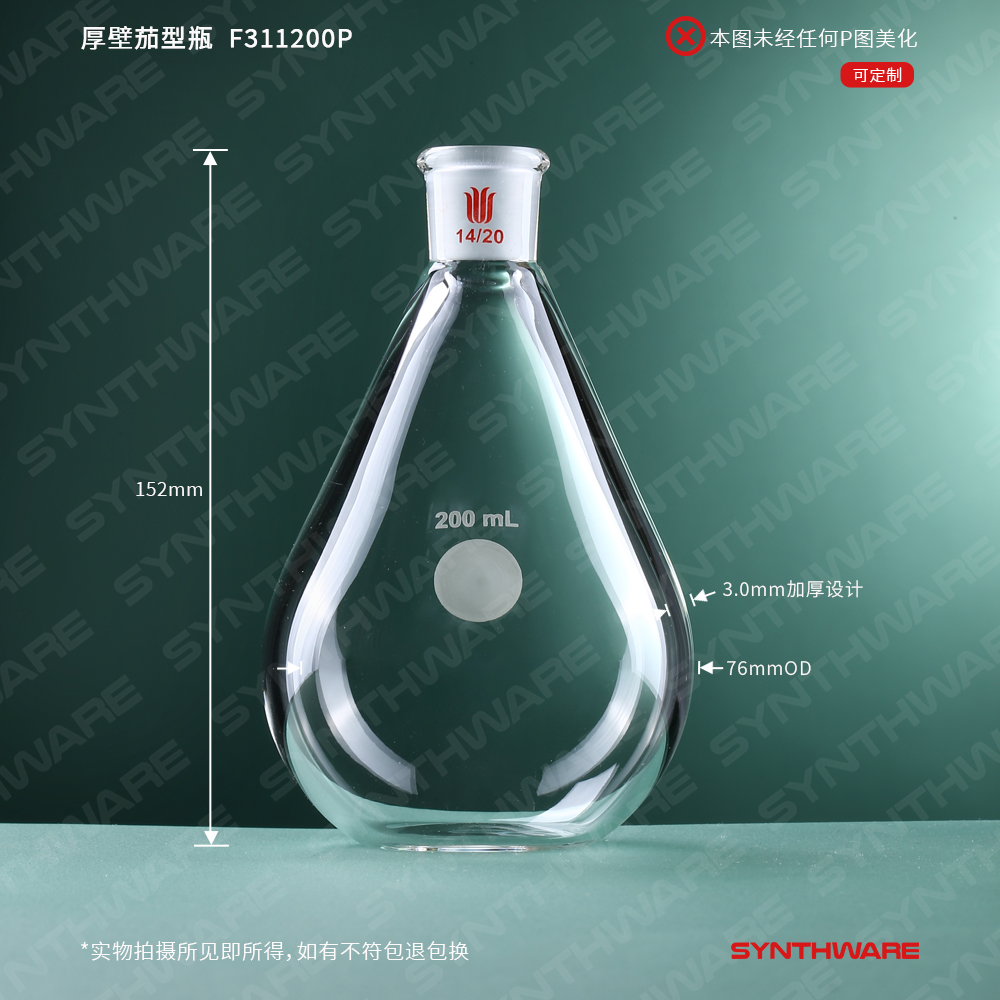 厚壁茄型瓶,平底,高强度,磨口:24/40,200ml F314200P