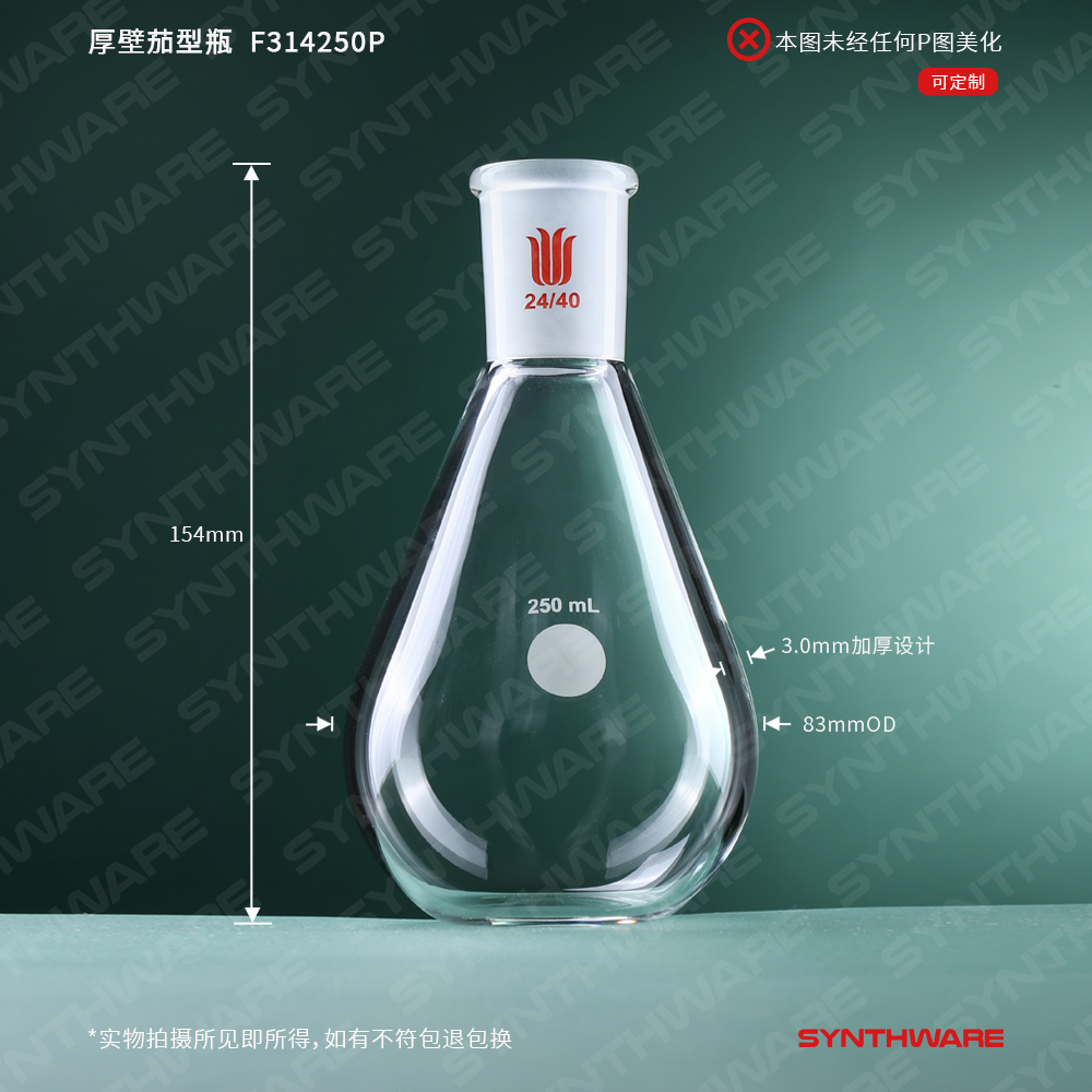 厚壁茄型瓶,平底,高强度,磨口:24/40,100ml F314100P