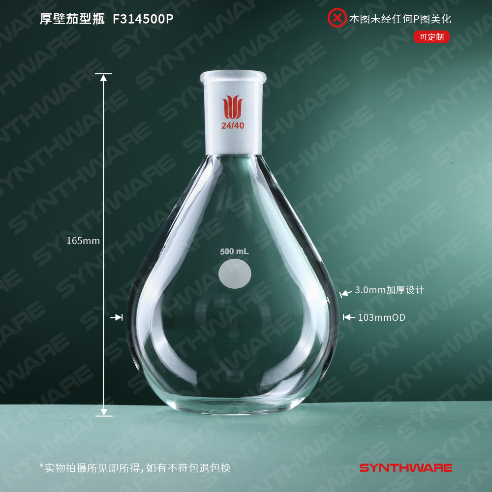 厚壁茄型瓶,平底,高强度,磨口:24/40,100ml F314100P