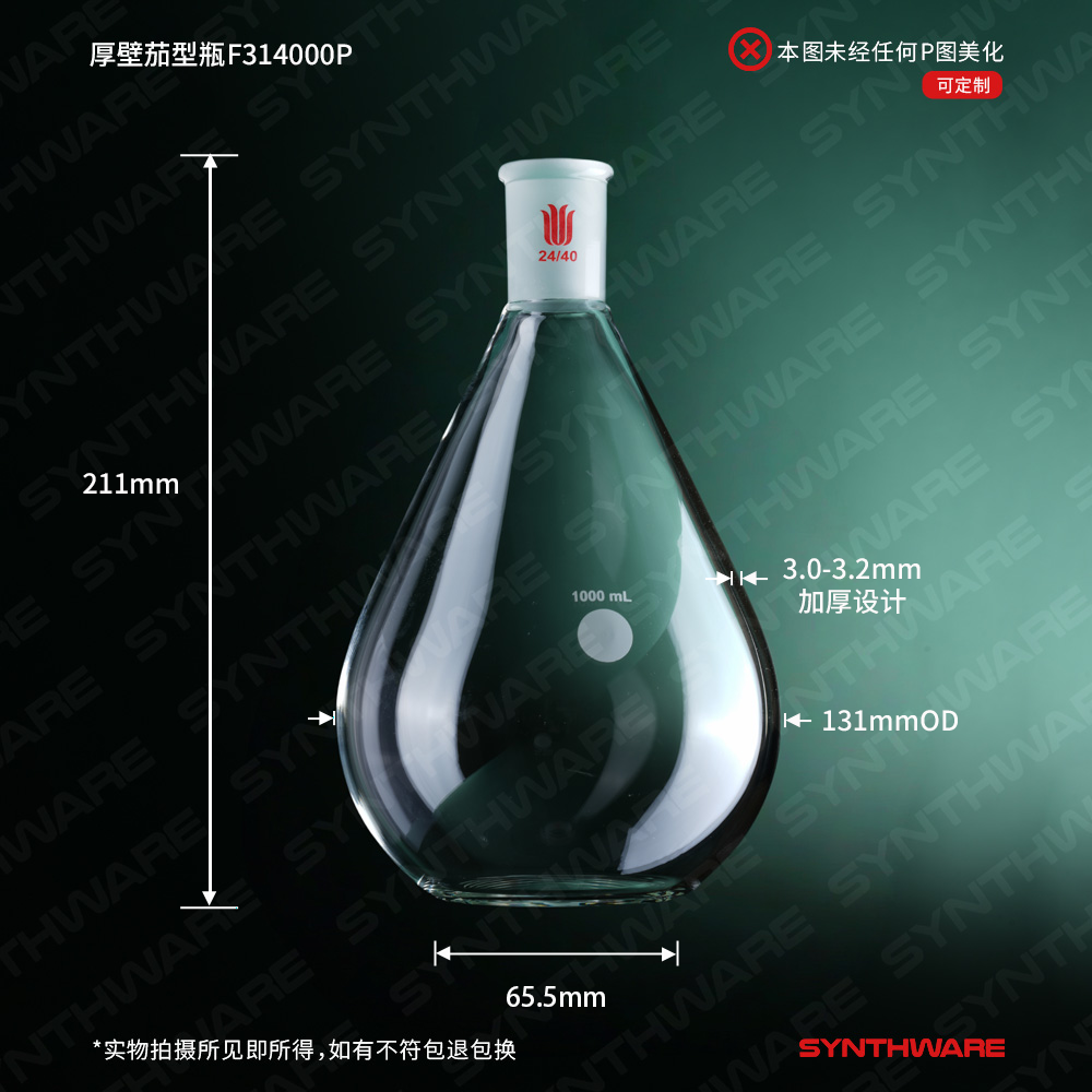 厚壁茄型瓶,平底,高强度,磨口:24/40,1000ml F314000P