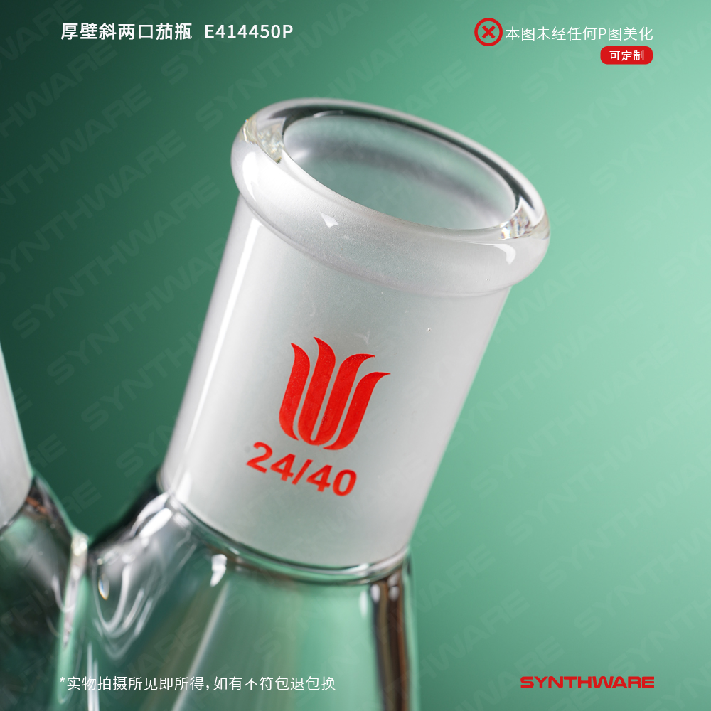 厚壁斜两口茄瓶,平底,高强度,中间磨口:24/40,侧磨口:24/40,100ml E414400P