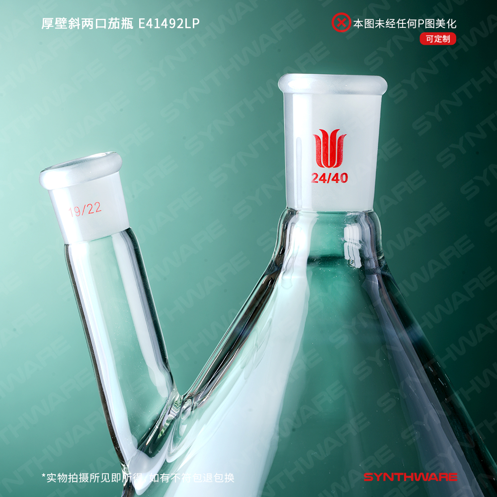 厚壁斜两口茄瓶,平底,高强度,中间磨口:24/40,侧磨口:14/20,100ml E414100P