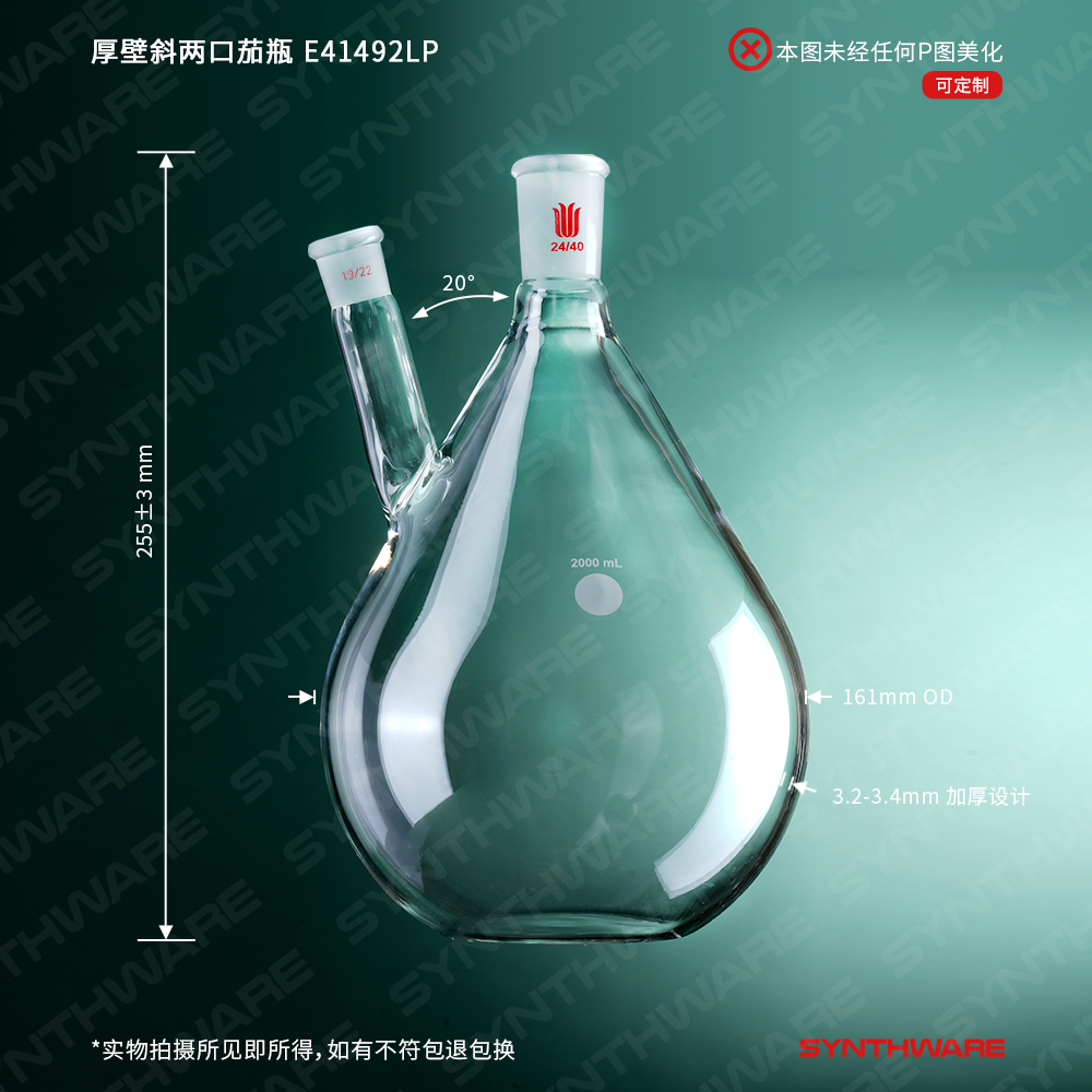 厚壁斜两口茄瓶,平底,高强度,中间磨口:29/42,侧磨口:24/40,2000ml E41712LP