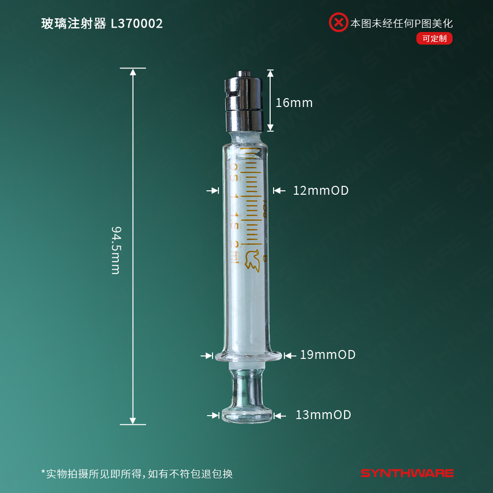 玻璃注射器,具金属鲁尔锁紧头,规格:2ml,白芯,10支/盒 L370002