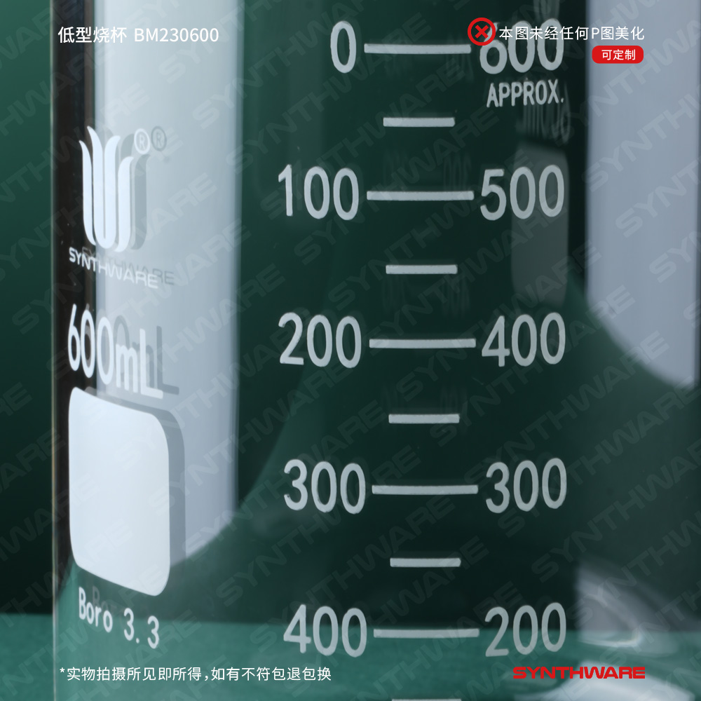 低型烧杯,厚壁,满刻度,容量:600ml BM230600