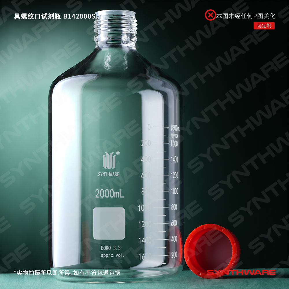 具螺纹口试剂瓶 2000ml GL45,标配红色螺纹盖,含密封圈,标配PTFE/硅胶垫片 B142000S