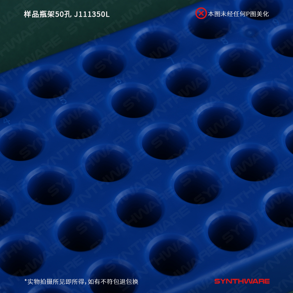 样品瓶架50孔(孔径17mm),蓝色PP塑料,长*宽*高mm:235*115*28 J111750L