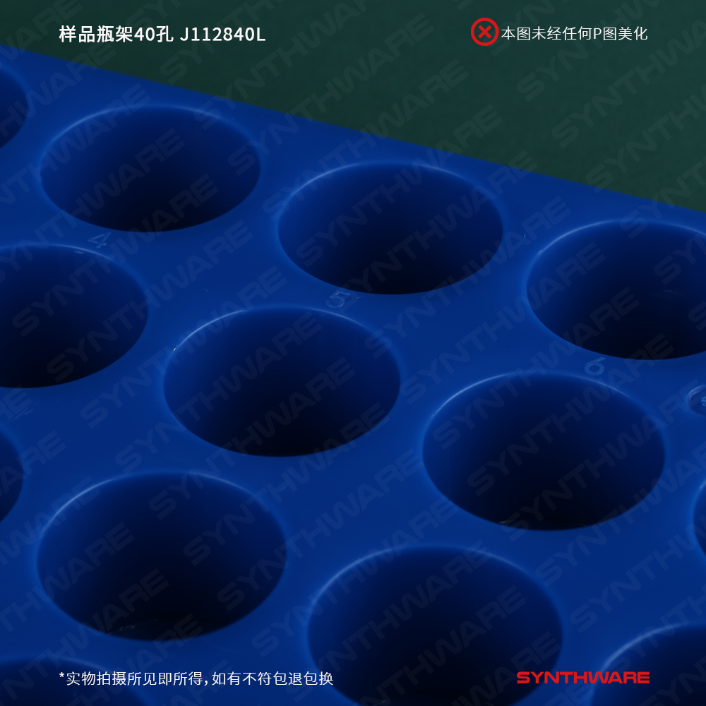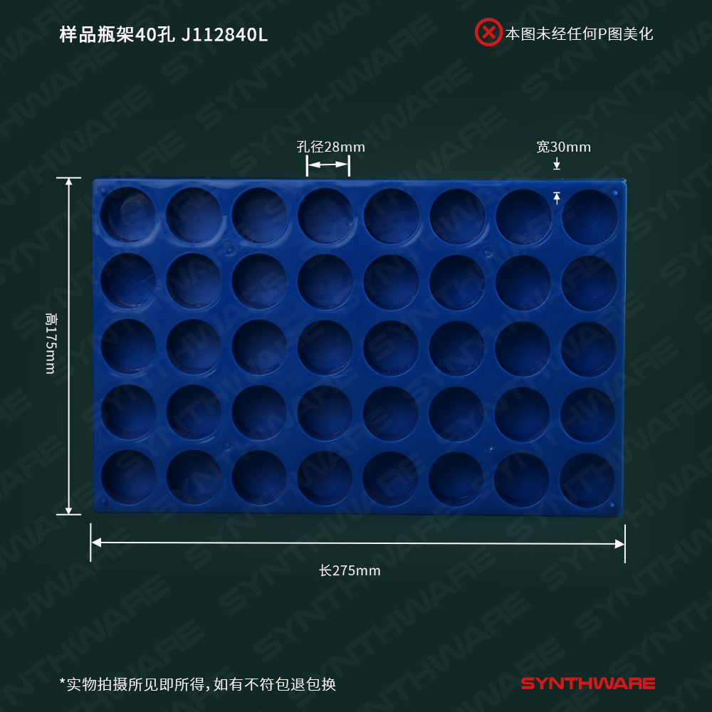 样品瓶架40孔(孔径28mm),蓝色PP塑料,长*宽*高mm:275*175*30 J112840L