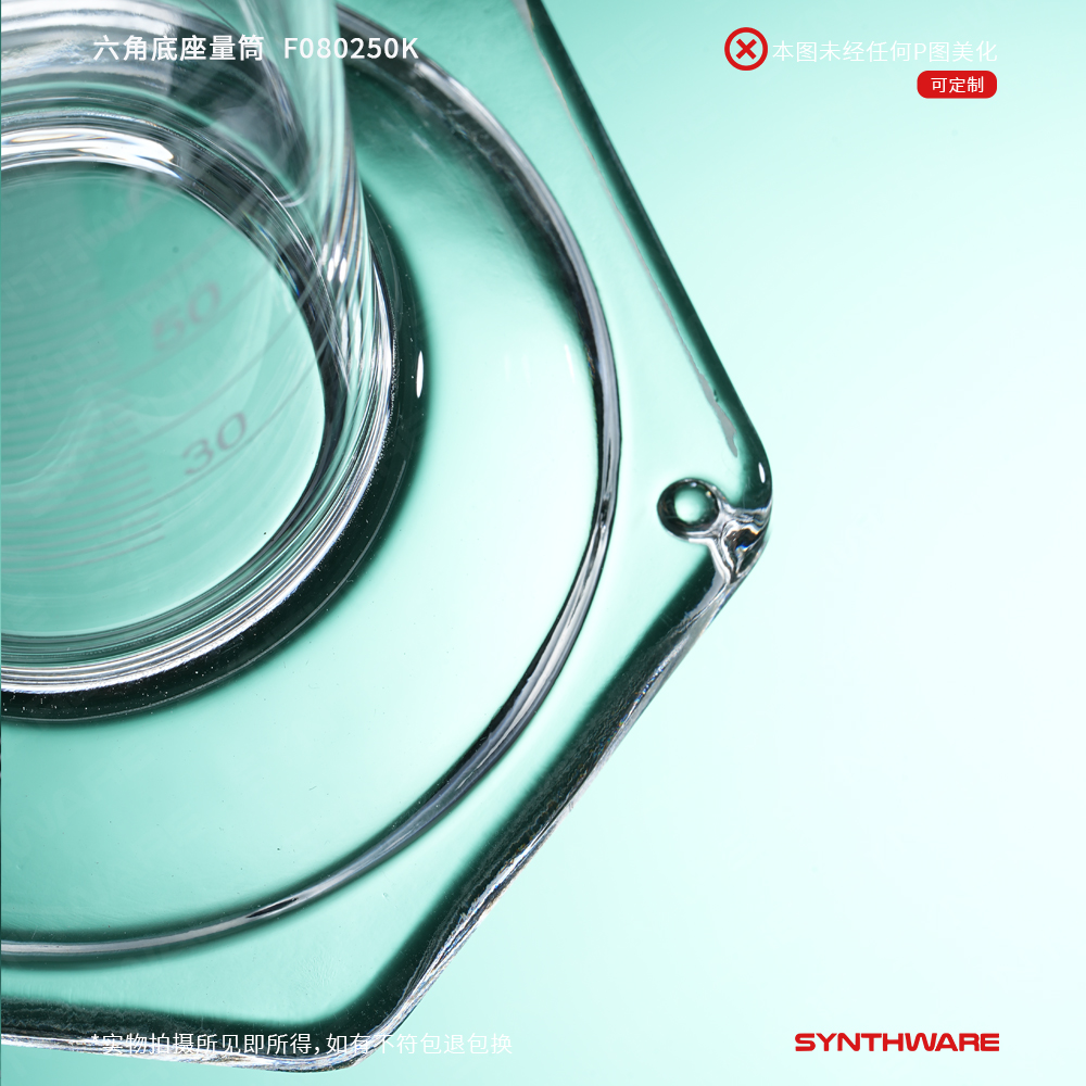 50ml 六角底座量筒,高硼硅透明玻璃,磨口14/23标配塑料口塞,1支 F080050S