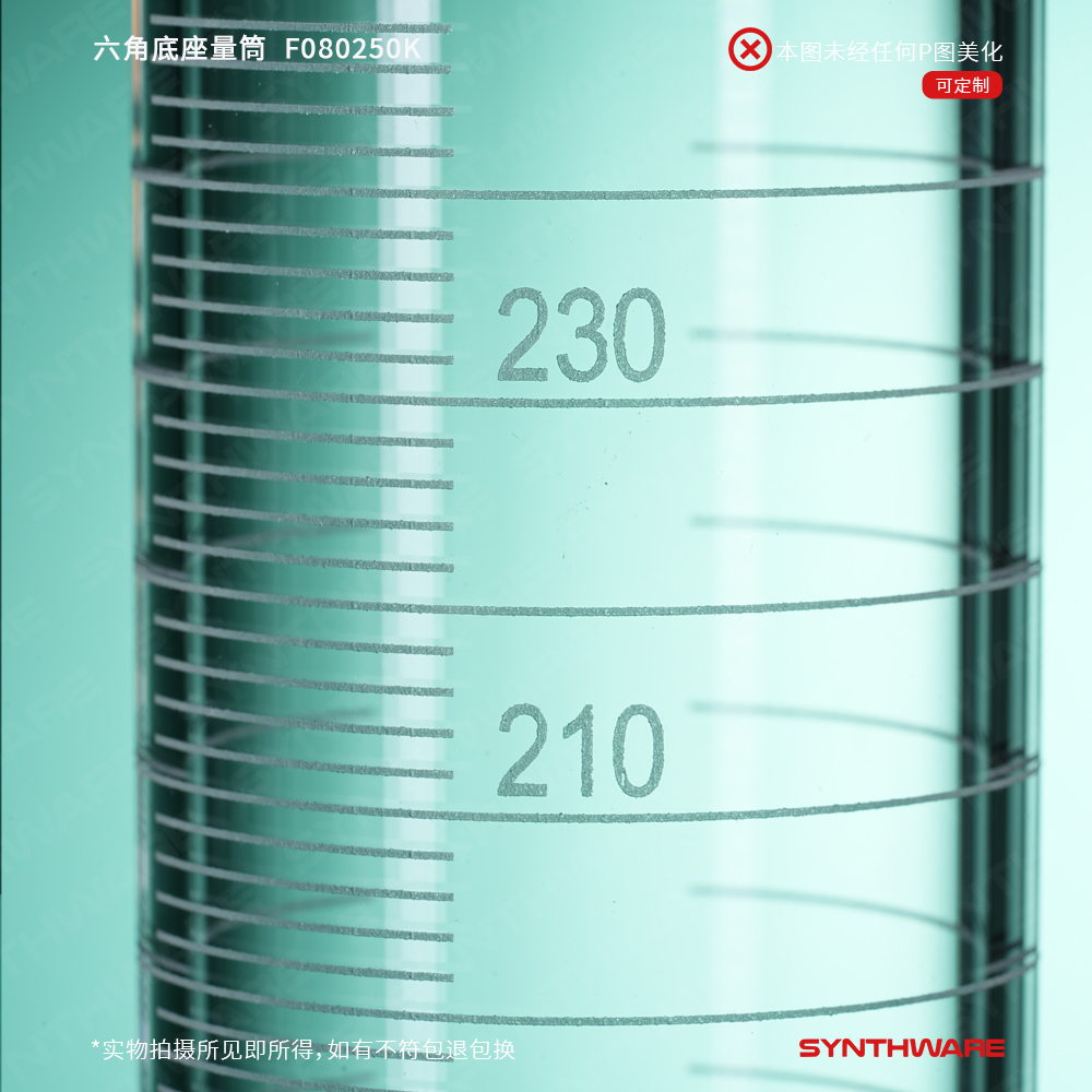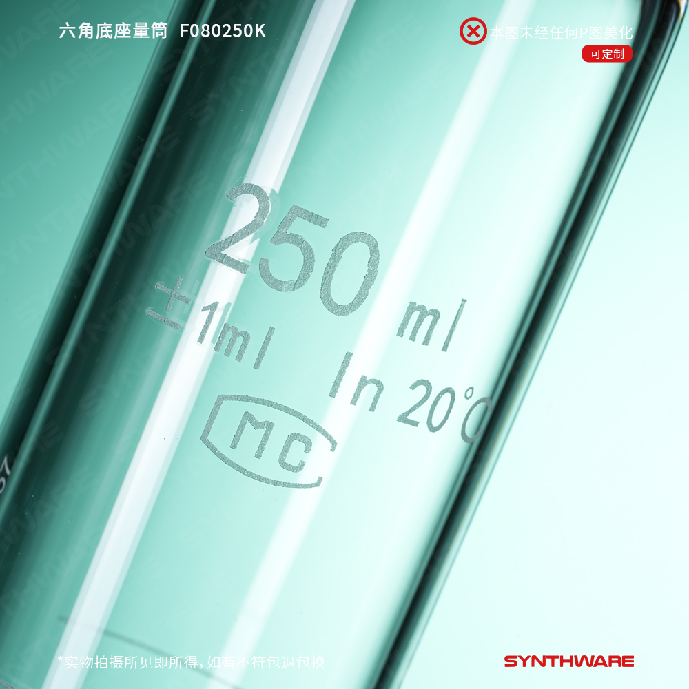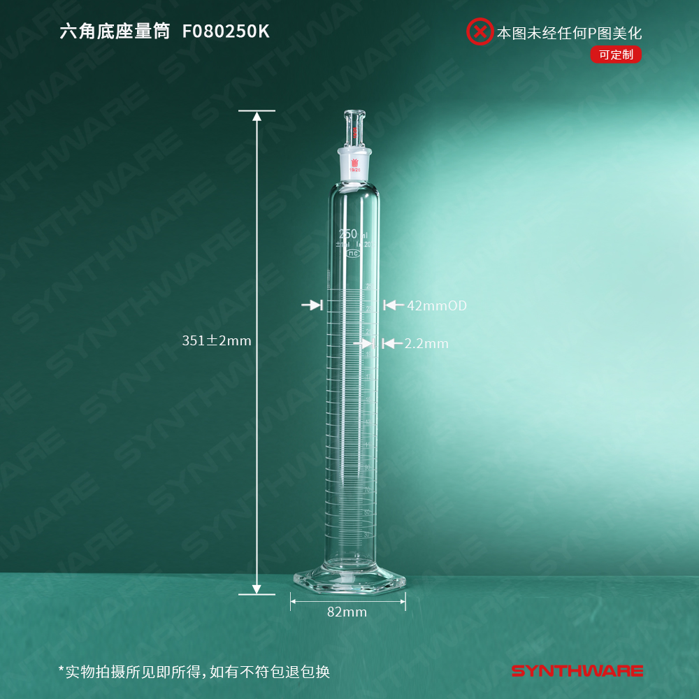 250ml 六角底座量筒,高硼硅透明玻璃,磨口19/26标配玻璃塞,1支 F080250K