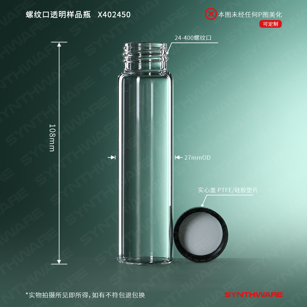 30ml样品瓶套装,高硼硅3.3透明玻璃,24-400螺纹,27.5*75mm,无孔盖 PE垫片,100/套 X402430