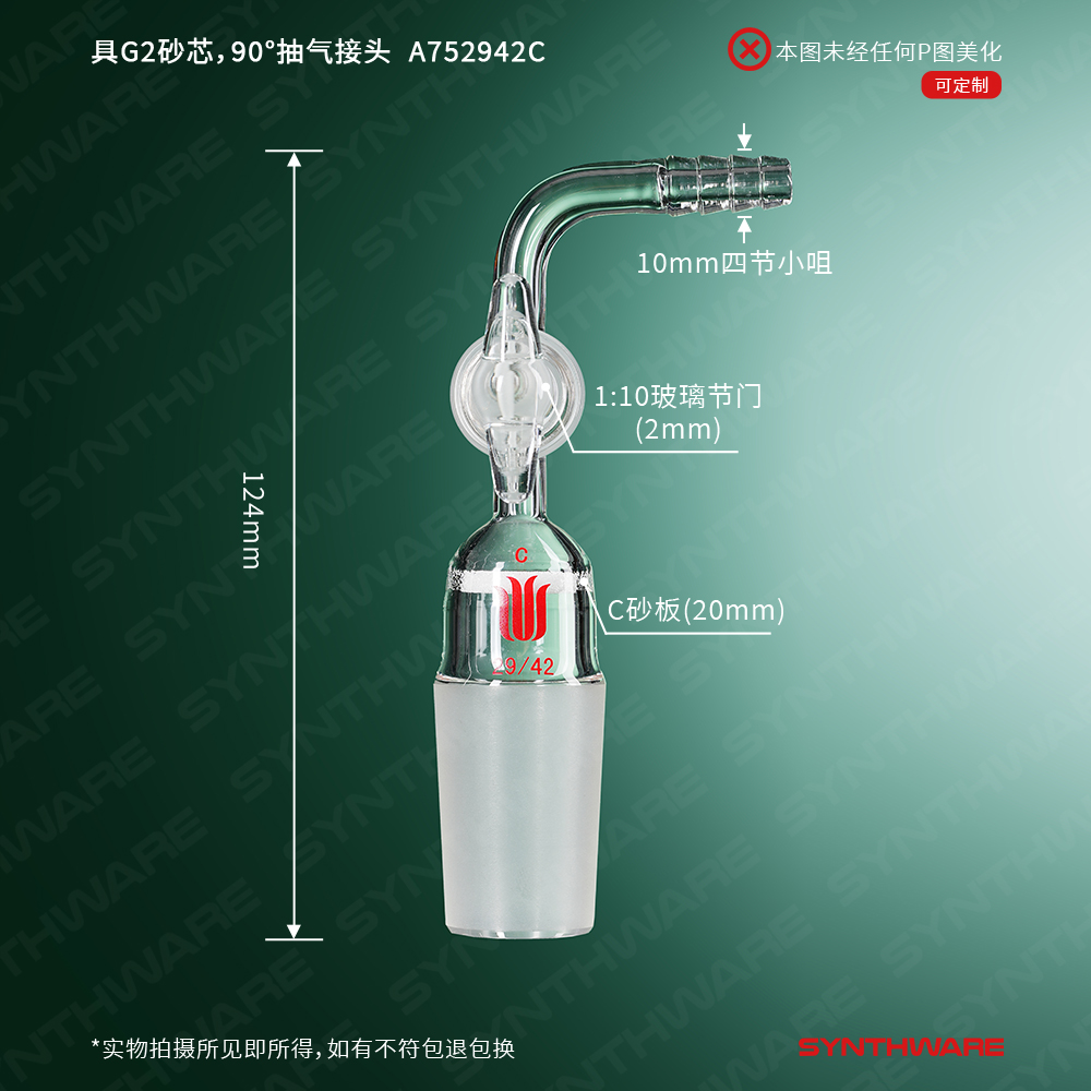具G1砂芯,90°抽气接头,玻璃节门,29/42,2mm节门孔径 A752942X