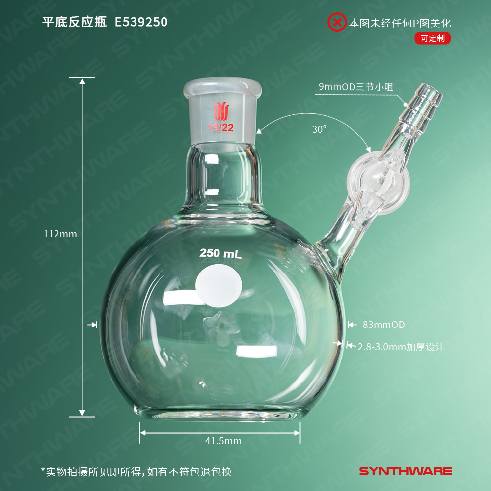 平底反应瓶,玻璃节门,19/22,250ml E539250