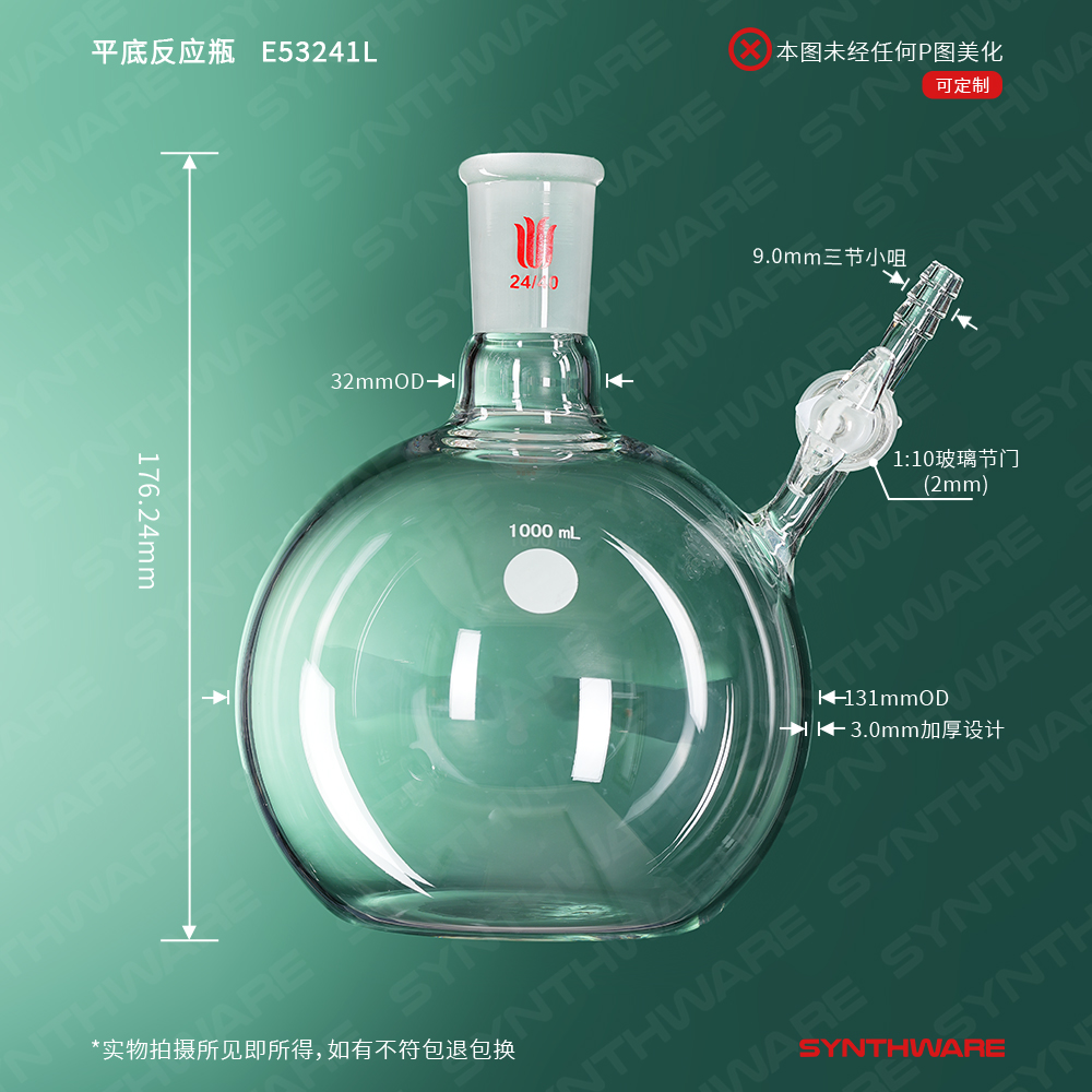 平底反应瓶,玻璃节门,24/40,1000ml E53241L
