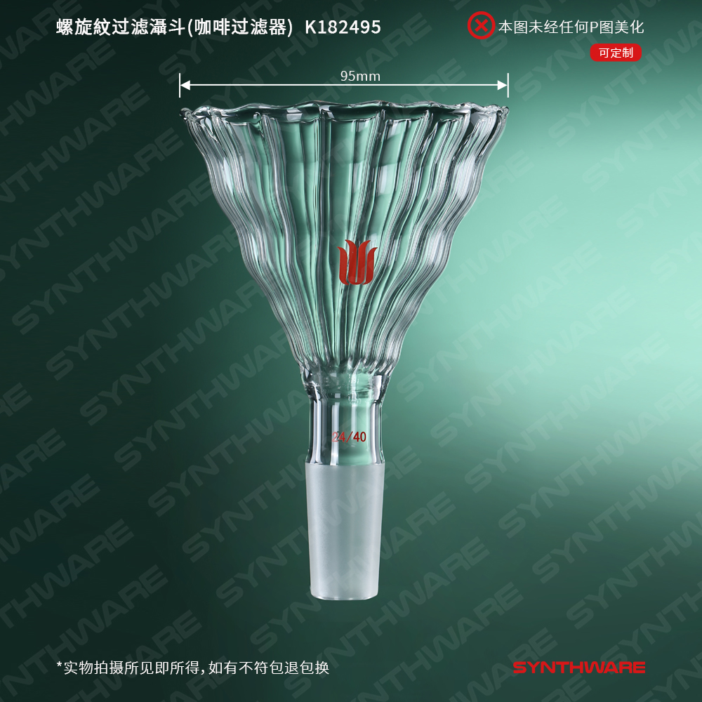 螺旋纹过滤漏斗(咖啡过滤器),24/40外磨口,漏斗上口直径:95mm K182495