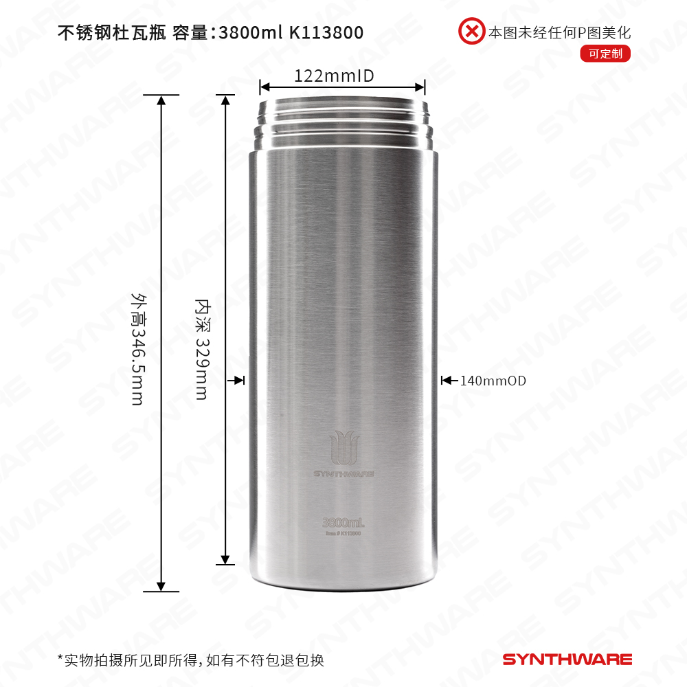 不锈钢杜瓦瓶,容量:3800ml,内径*内高:122*329mm,外径*外高:140*346.5mm,1个/盒 K113800