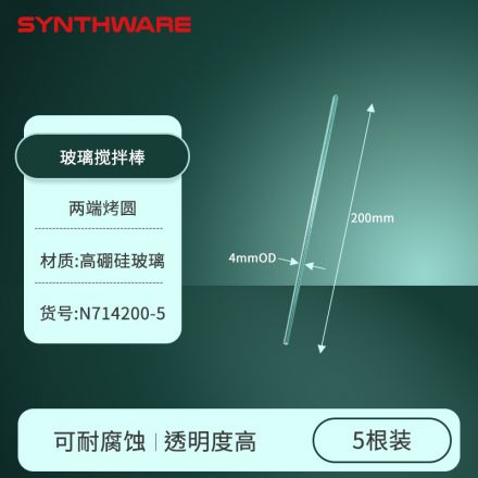 玻璃搅拌棒(两头烤圆),外径4mm长度200mm,2根/包 N714200 N714200-2
