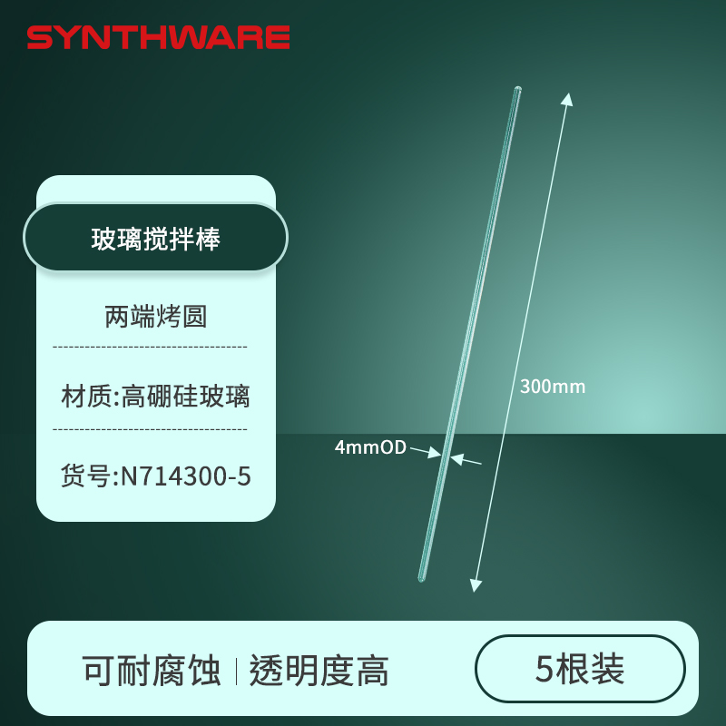 玻璃搅拌棒(两头烤圆),外径4mm长度300mm,2根/包 N714300 N714300-2