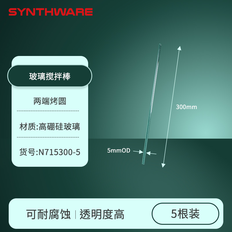 玻璃搅拌棒(两头烤圆),外径6mm长度300mm,5根/包 N716300 N716300-5