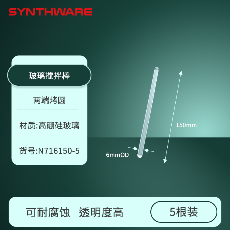 玻璃搅拌棒(两头烤圆),外径8mm长度150mm,5根/包 N718150 N718150-5