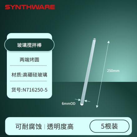 玻璃搅拌棒(两头烤圆),外径6mm长度300mm,5根/包 N716300 N716300-5