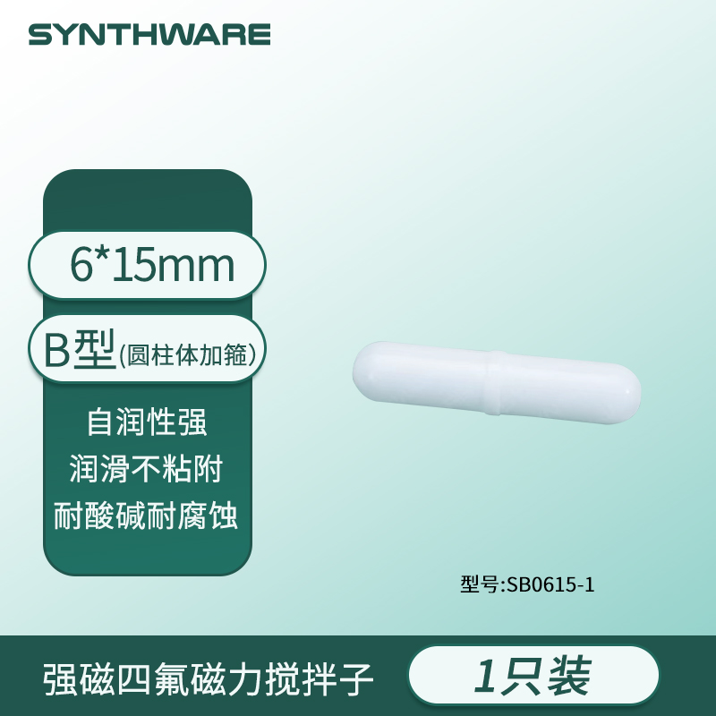四氟磁力搅拌子 B6*20mm(圆柱体加箍)5只/盒 SB0620