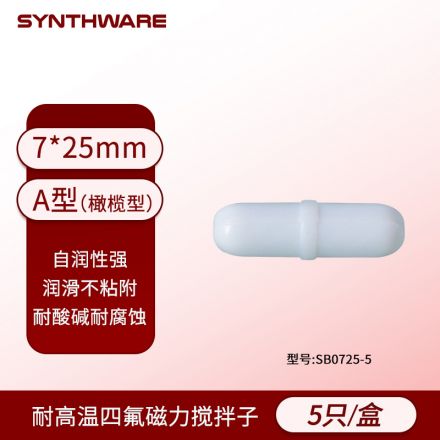 四氟磁力搅拌子B7*15mm(圆柱体加箍)5只/盒 SB0715