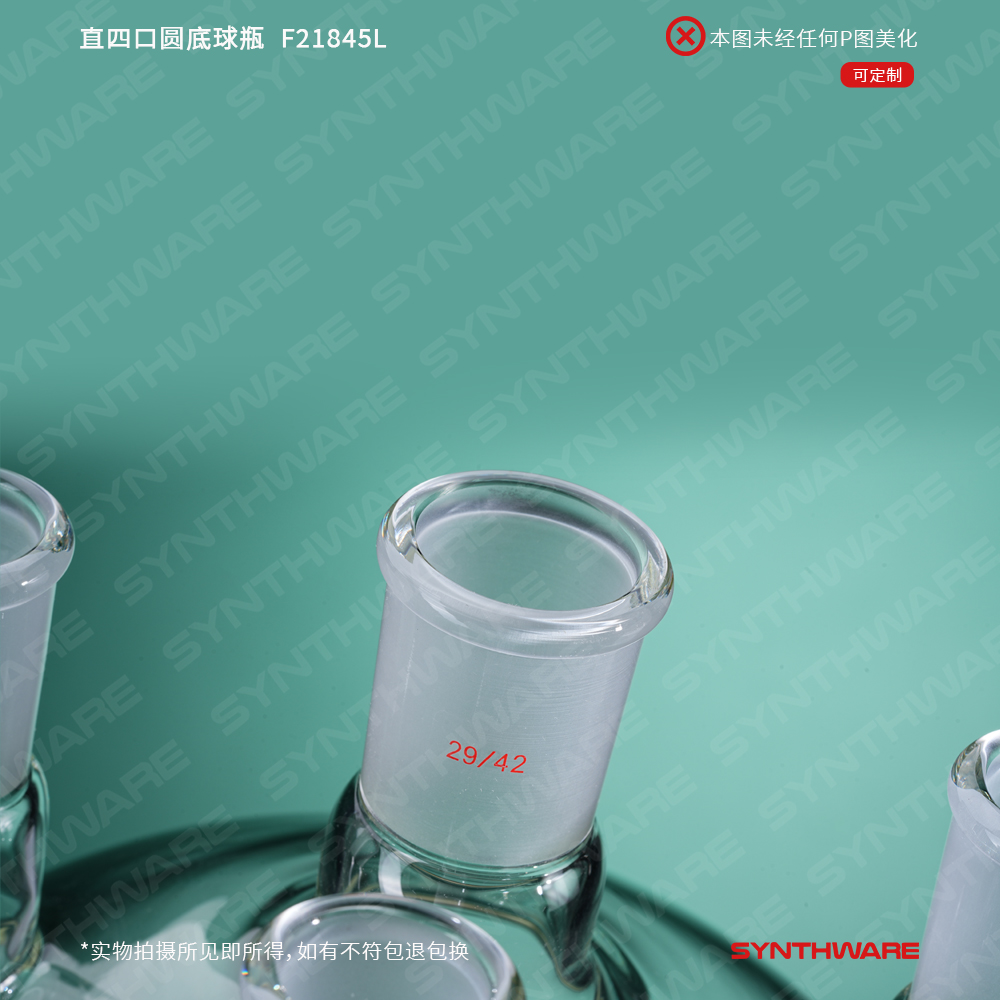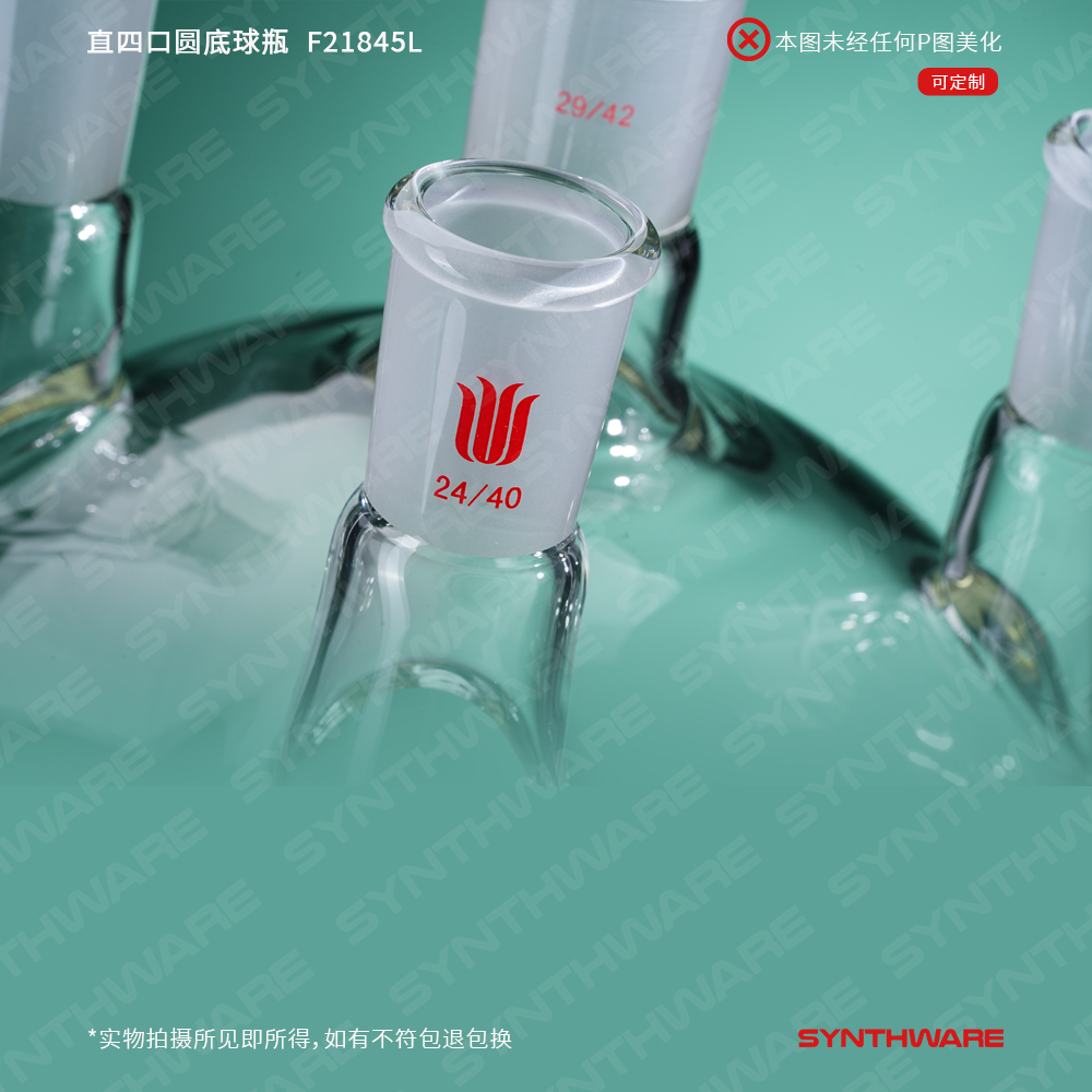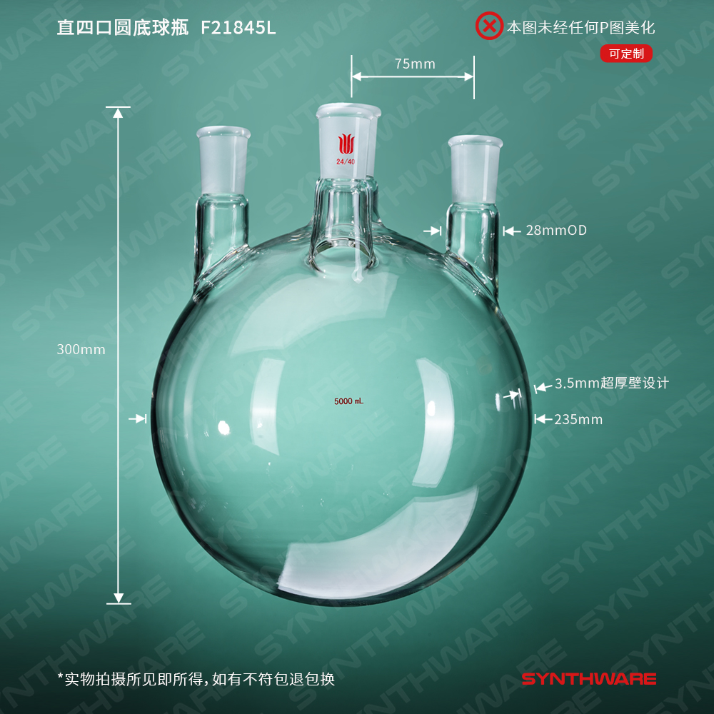 直四口圆底球瓶,中间磨口:29/42,侧口和前口:24/40,5000ml F21845L