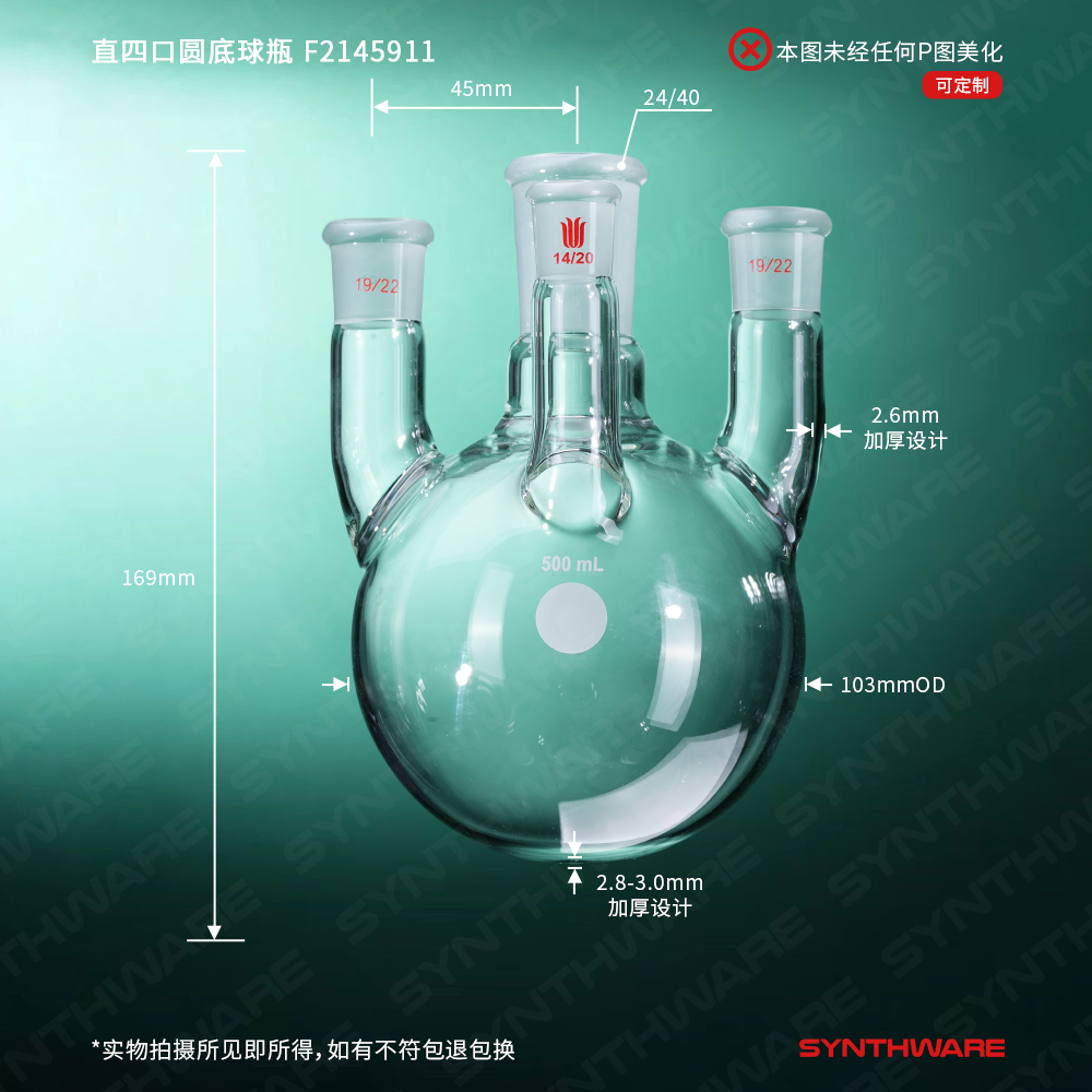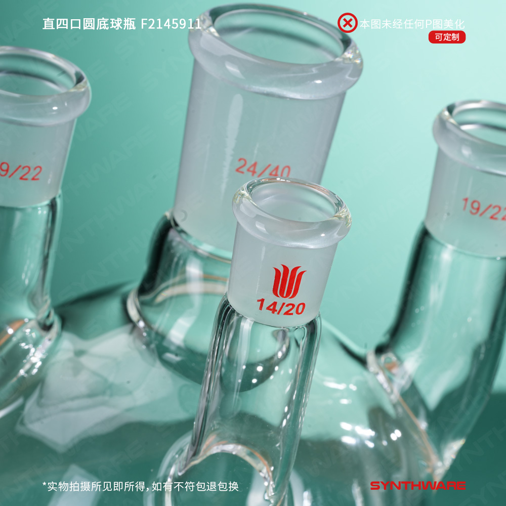 # 侧口可与温度计接头搭配插入温度计或导气管,检测体系温度或连通气源。也可根据需求连接其他功能性接头或装置如:通气接头,冷凝器,加料漏斗等。