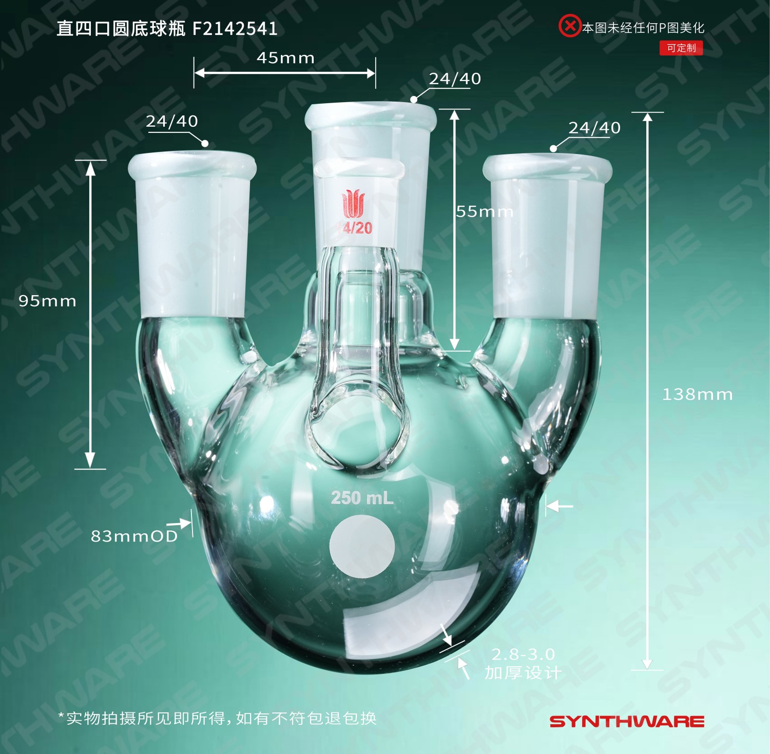 直四口圆底球瓶,主口:24/40,侧口:24/40,前口:14/20,250ml F2142541