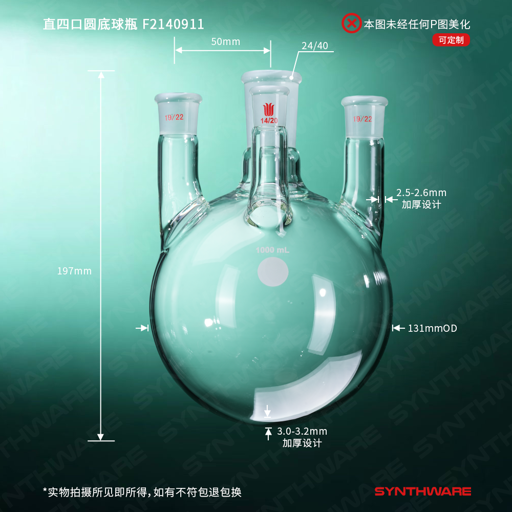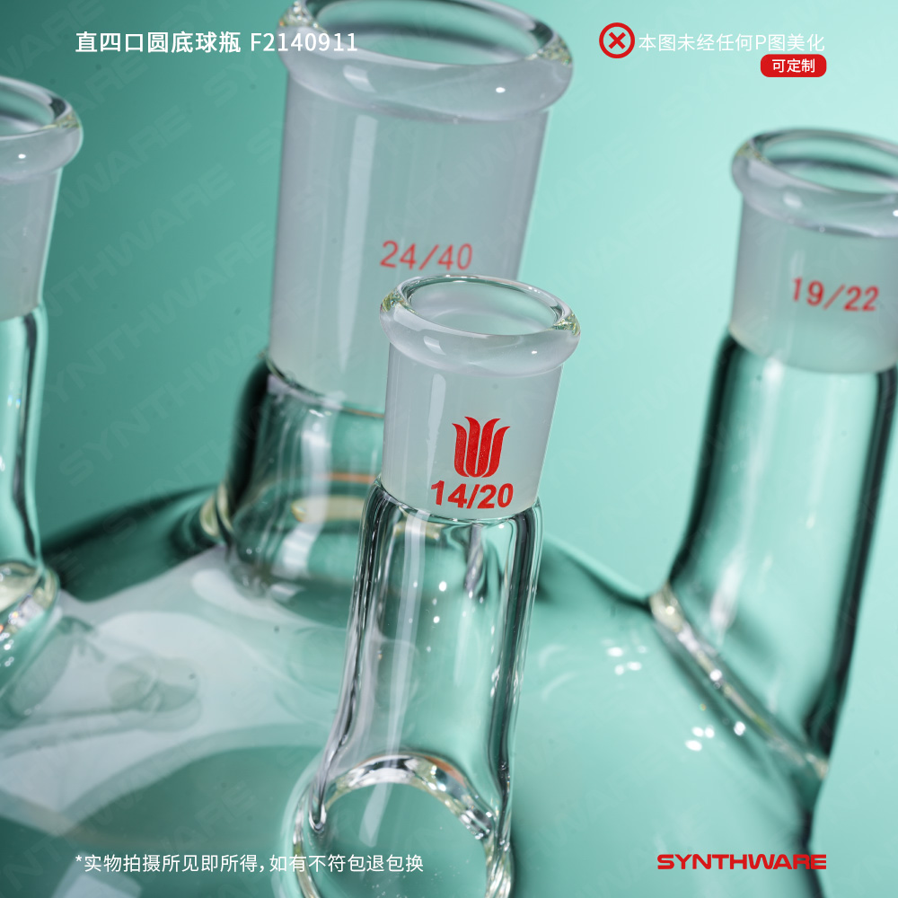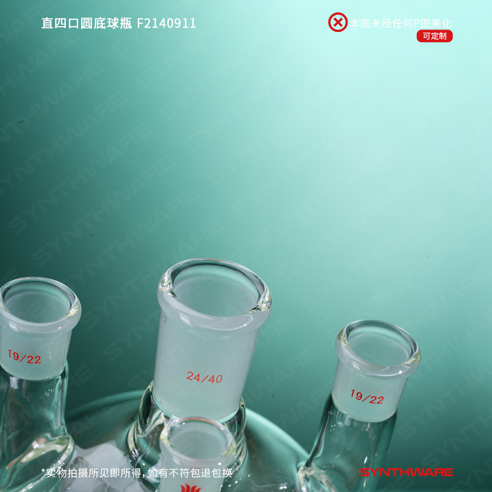 直四口圆底球瓶,中间口:24/40,侧口:19/22,前口:14/20,1000ml F2140911