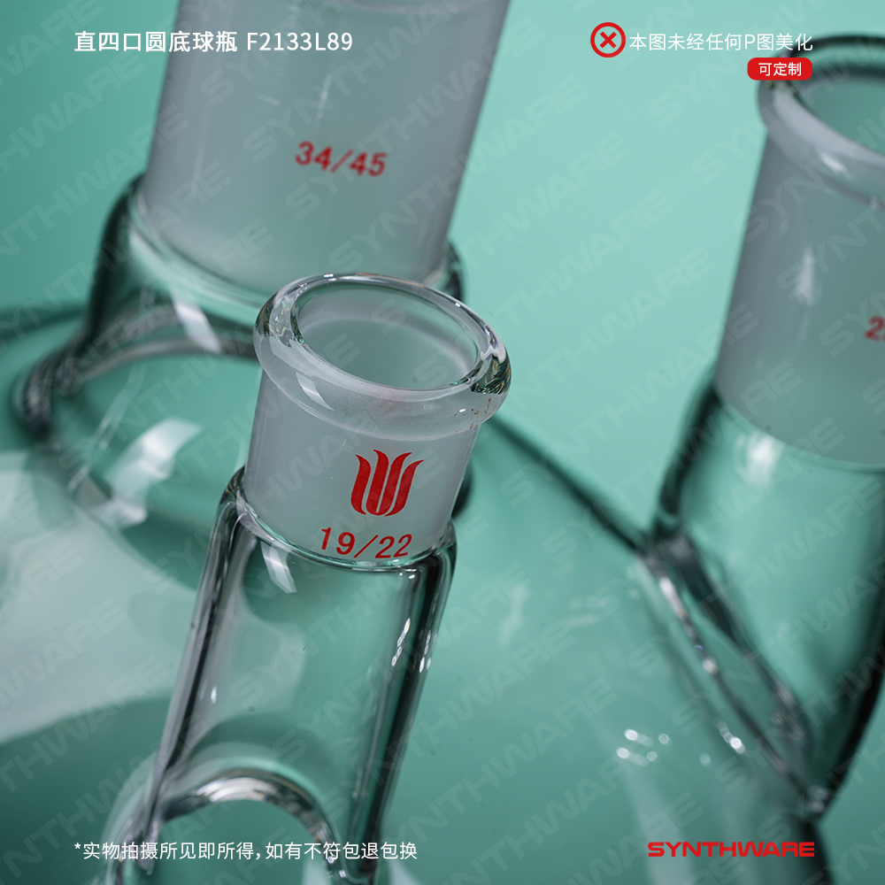 # 侧口可与温度计接头搭配插入温度计或导气管,检测体系温度或连通气源。也可根据需求连接其他功能性接头或装置如:通气接头,冷凝器,加料漏斗等。