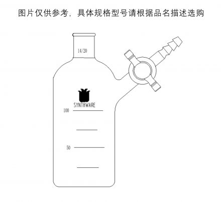 平底反应管,四氟单通节门,磨口:14/20,容量:100ml F991100S
