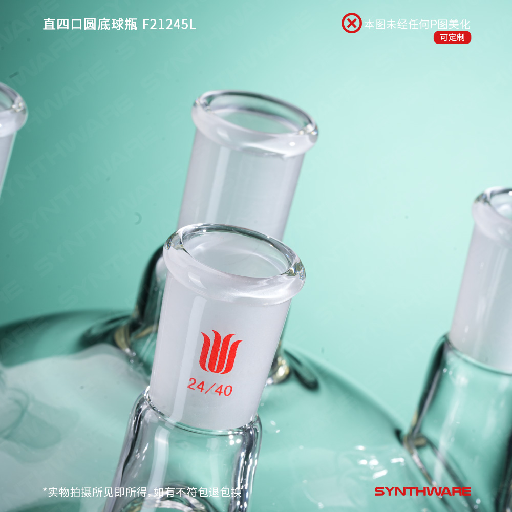 # 侧口可与温度计接头搭配插入温度计或导气管,检测体系温度或连通气源。也可根据需求连接其他功能性接头或装置如:通气接头,冷凝器,加料漏斗等。