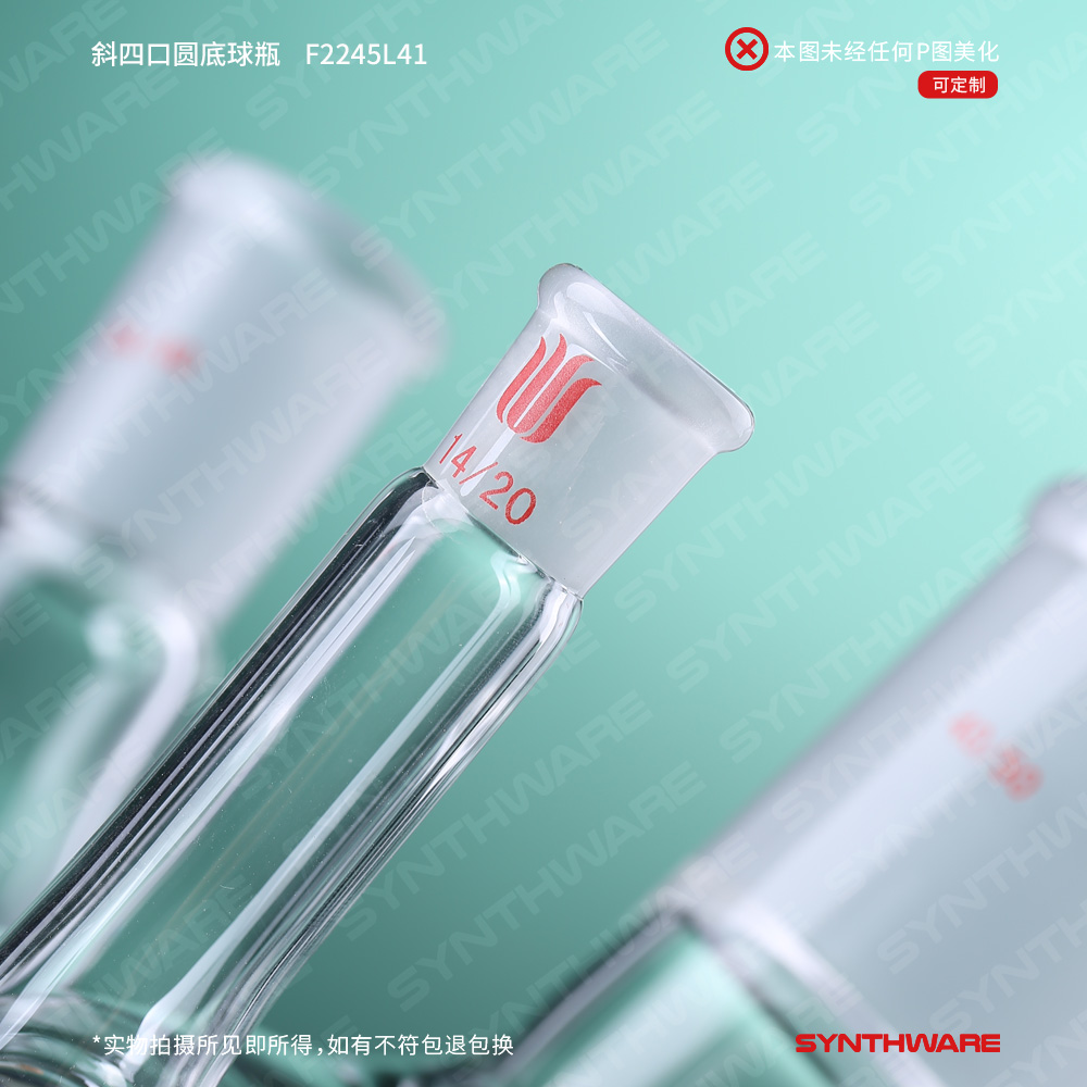 斜四口圆底球瓶,中磨口:19/22,侧口:19/22,前口:14/20,1000ml F2290091