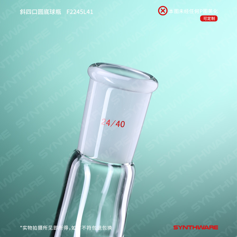 斜四口圆底球瓶,中磨口:24/40,侧口:19/22,前口:14/20,1000ml F2240911