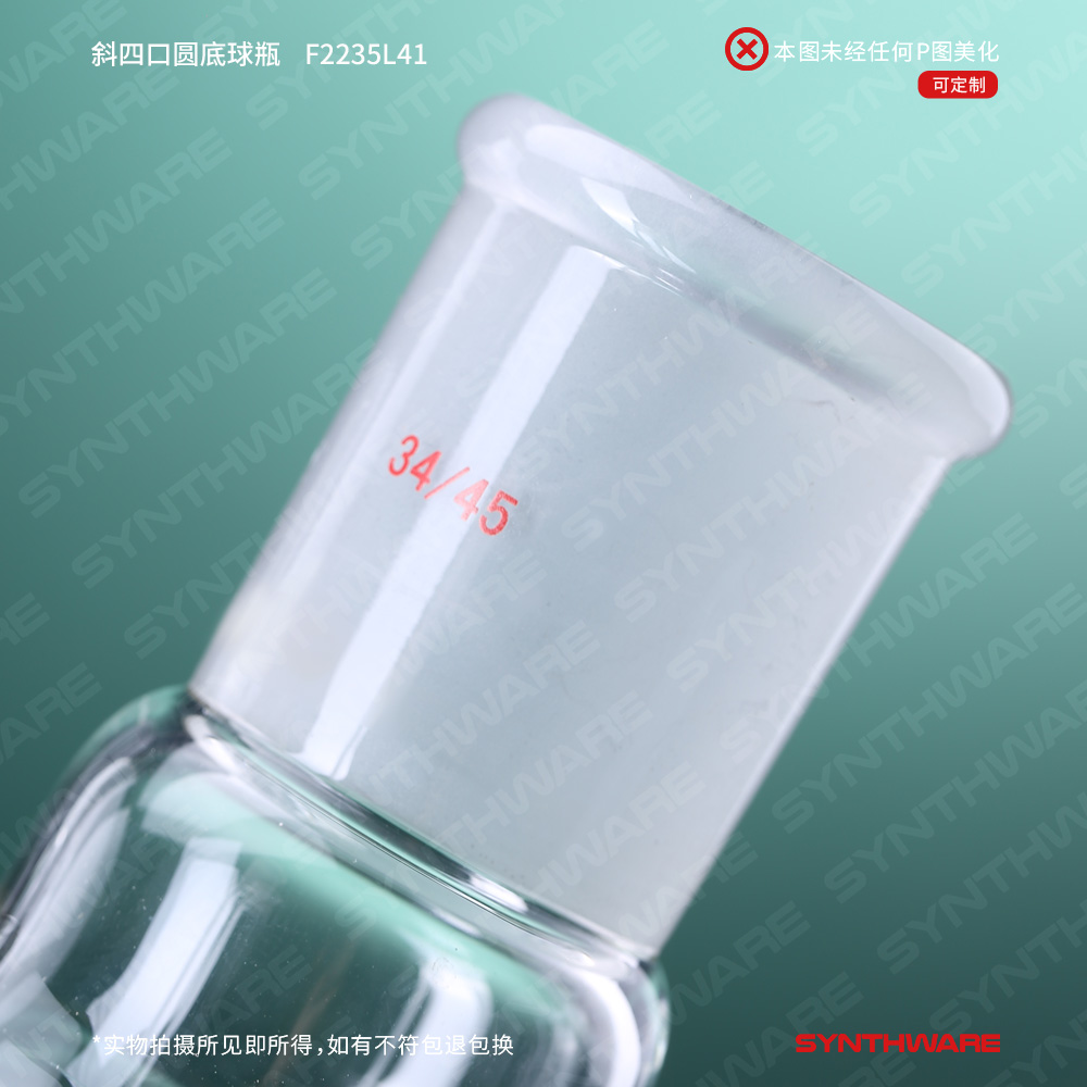 斜四口圆底球瓶,中间磨口:34/45,侧磨口:29/42,1000ml F22381L