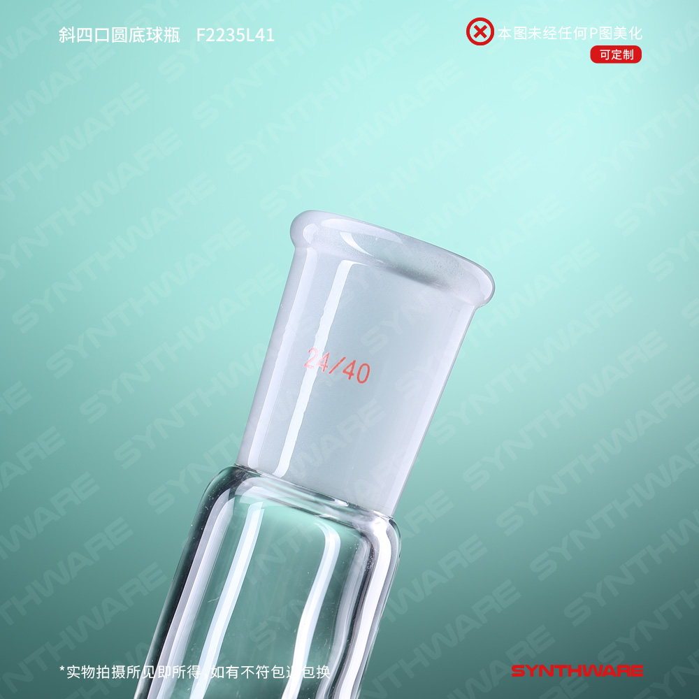 斜四口圆底球瓶,中磨口:24/40,侧口:19/22,前口:14/20,1000ml F2240911