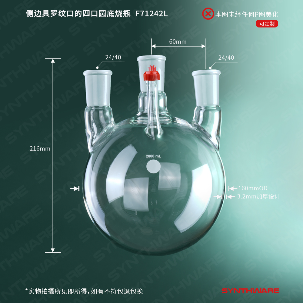 侧边具罗纹口的四口圆底烧瓶,中心磨口:24/40,侧磨:24/40,2000ml F71242L