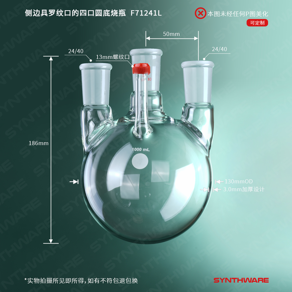 侧边具罗纹口的四口圆底烧瓶,中心磨口:24/40,侧磨:24/40,1000ml F71241L