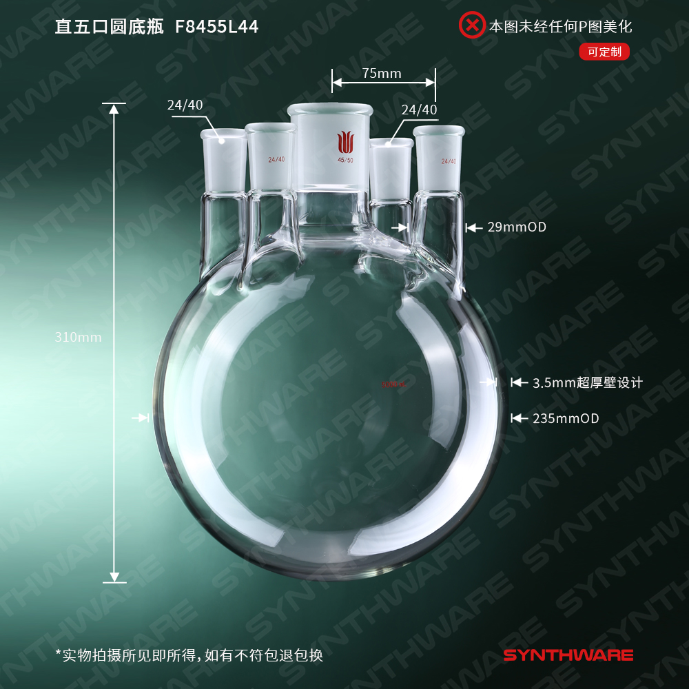 直五口圆底瓶,容量5000ml,主口45/50,边口24/40,边口24/40 F8455L44