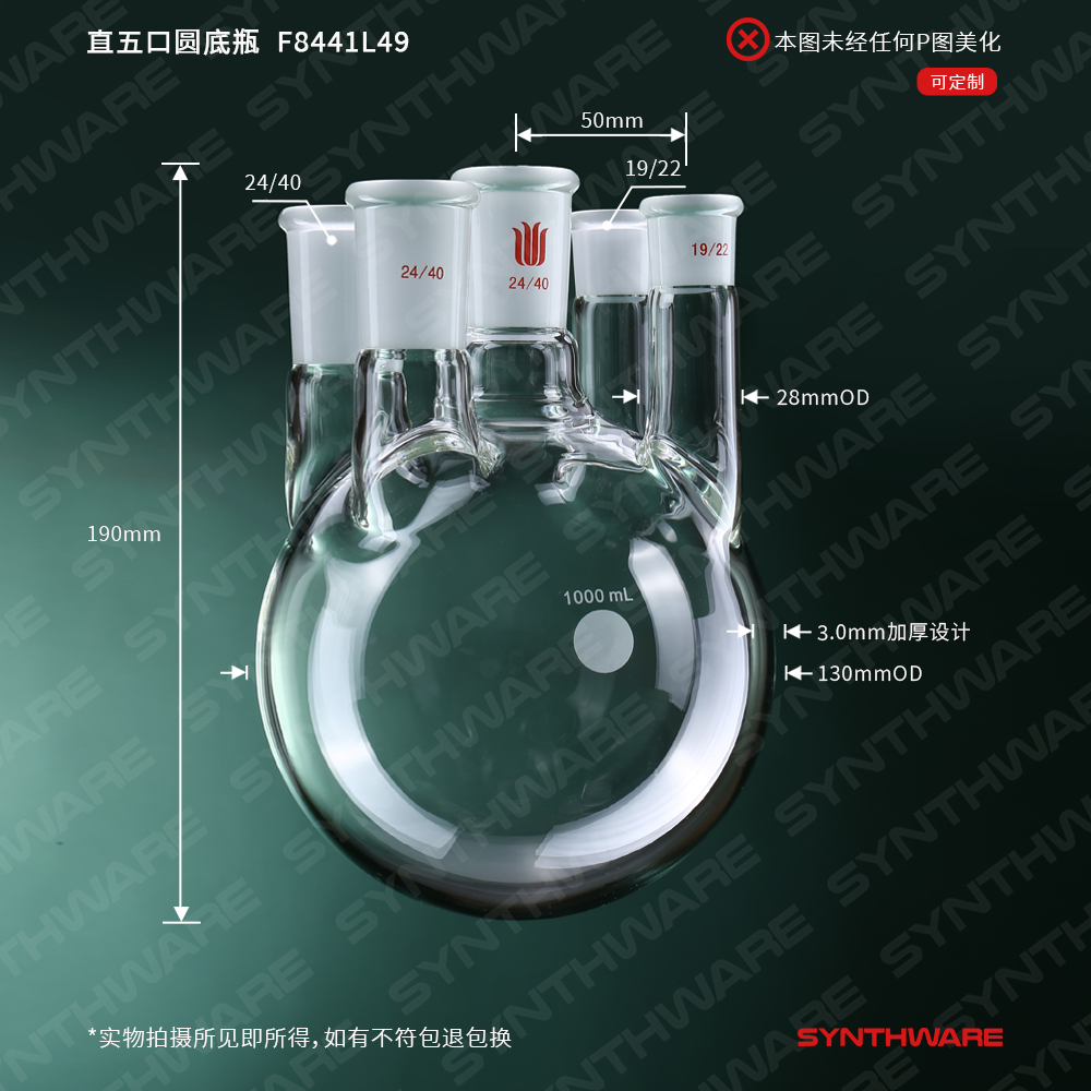 直五口圆底瓶,容量1000ml,主口24/40,边口24/40,边口19/22 F8441L49