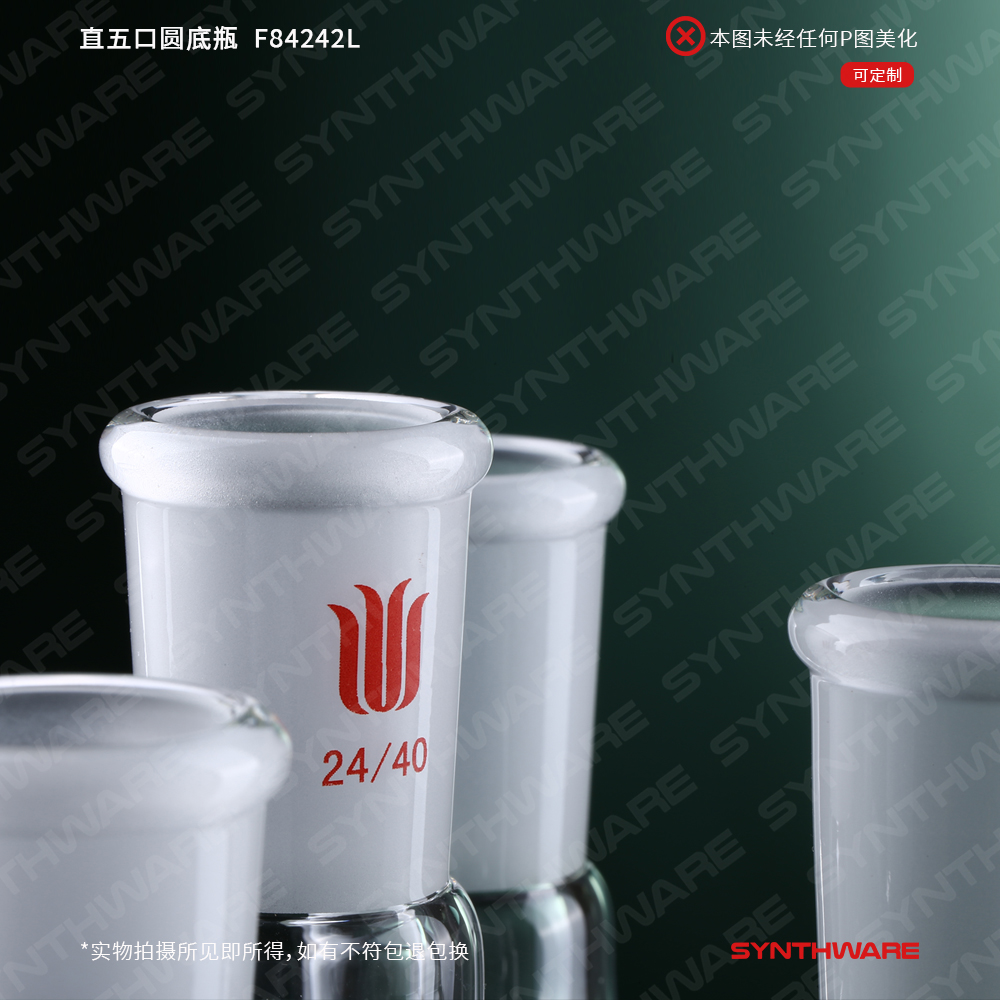 # 内磨口由金刚砂研磨,锥度1:10经正弦规测试,可根据需求连接功能性接头或装置如:通气接头,冷凝器,加料漏斗等。