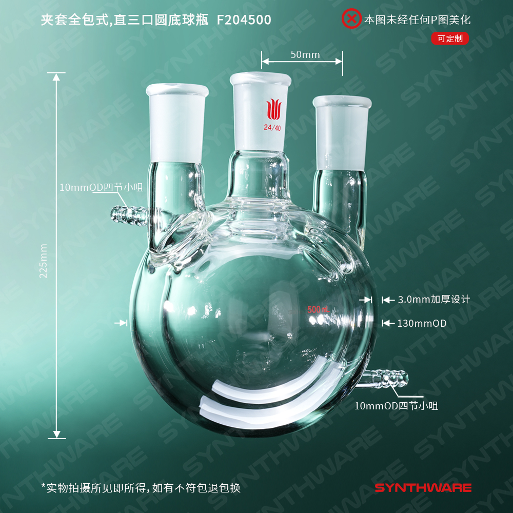 夹套全包式,直三口圆底球瓶,中间磨口:24/40,侧磨口:24/40,500ml F204500